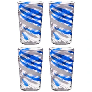 A pack of four glamorous picnic tumblers, featuring blue and grey swirls around the surface of the glass for the perfect toast.